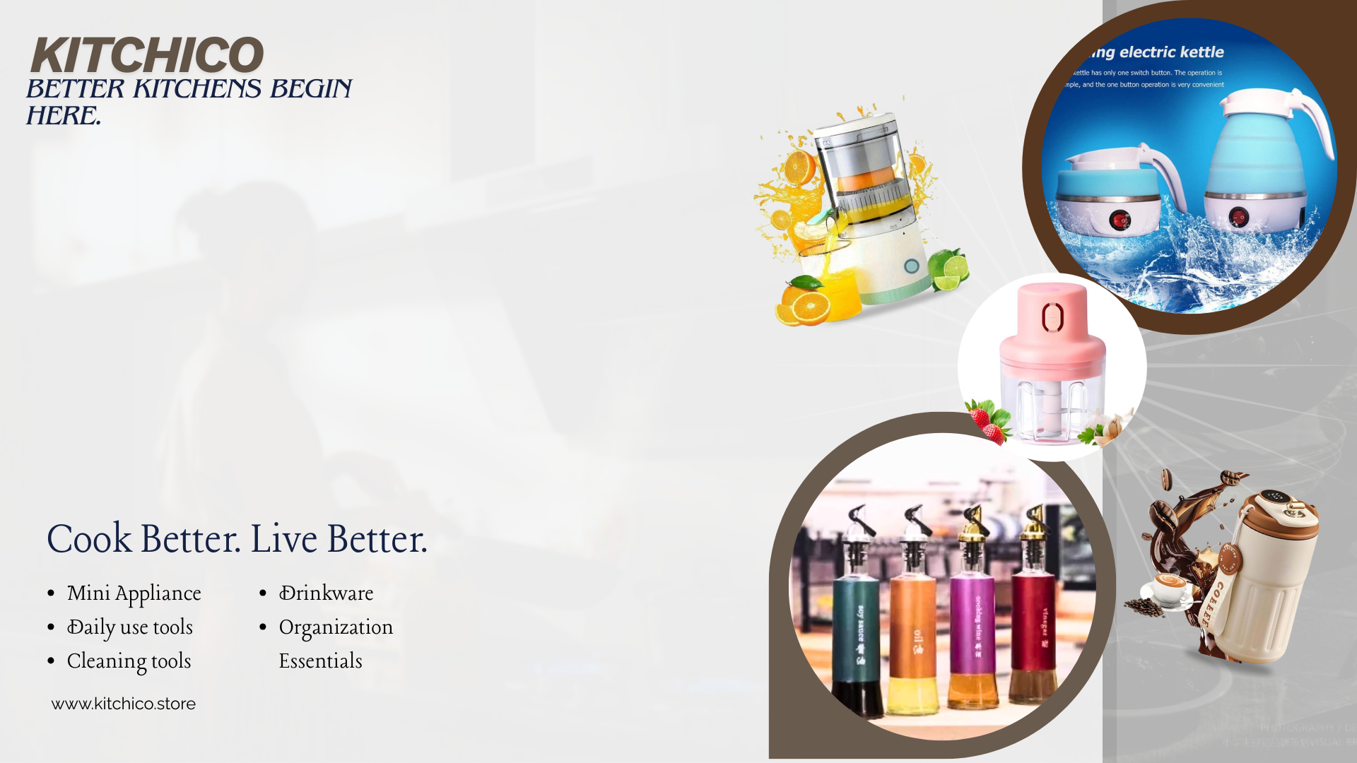 Kitchico is built for home cooks, busy families, and anyone who loves an organized kitchen.Every product we choose is designed to save time, reduce effort, and make cooking more enjoyable.Your perfect kitchen starts here...